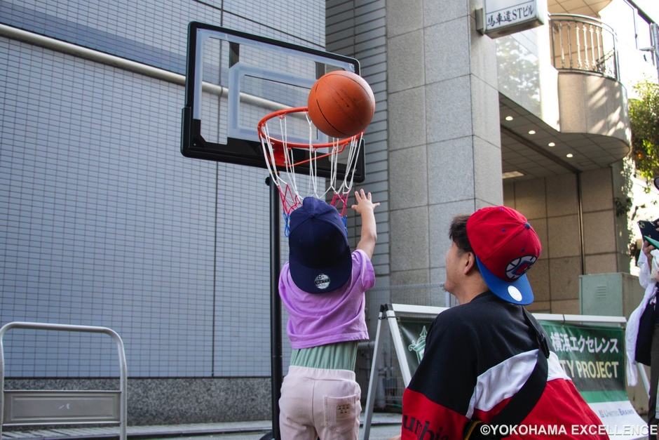 バスケットボールのシュートを体験できるイベントを開催。