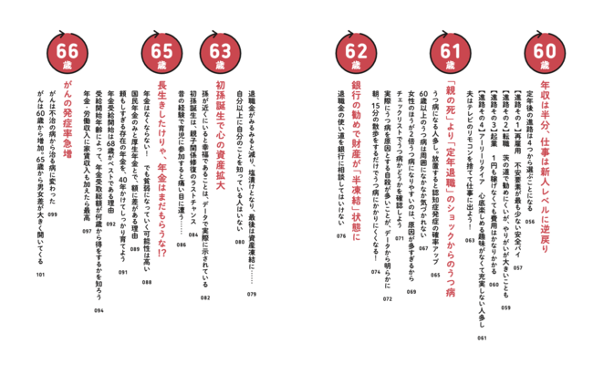 そこで本書では、「老後の年表」と銘打ち、何歳ごろに何が起きるのかの一覧を紹介。トラブルだけでなく、その解決策も懇切丁寧に解説しました。
