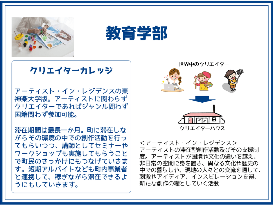 「働き遊び学べる東神楽大学プロジェクト。住み心地日本一の町の廃校から誕生。共に楽しむ仲間募集」