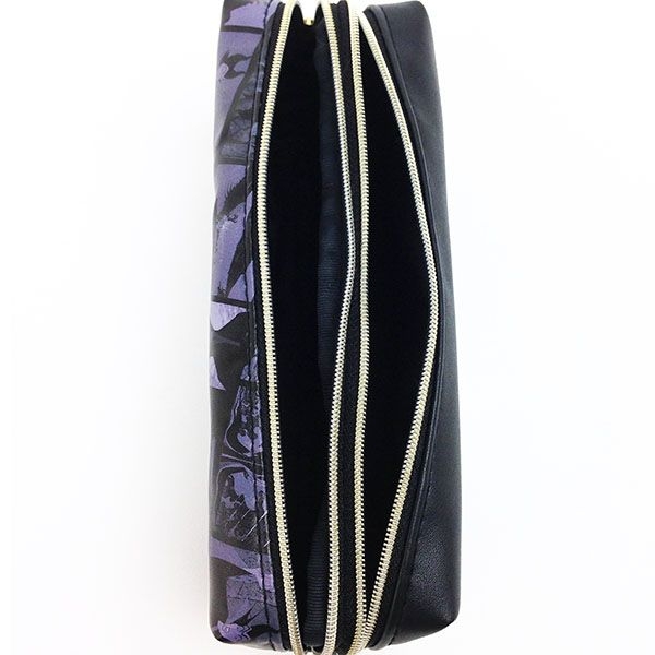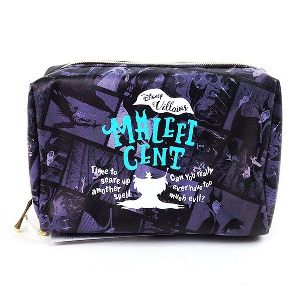 まずはマレフィセントのスクエアポーチです。100×140×80㎜の使いやすいサイズで、マチもあるので容量も◎。クールな色合いですが、中央に描かれたマレフィセントとロゴもオシャレです。