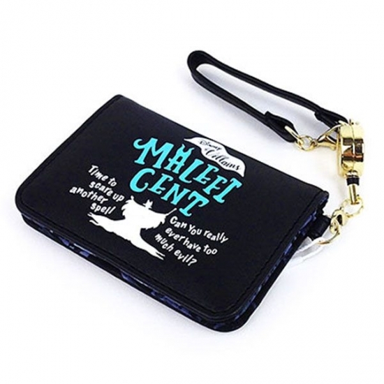 リール付きが便利な、パスケースもご紹介♪ブラックカラーにマレフィセントのデザインが映えます。使いやすさも保証付きのパスケースは、男女問わず使えるデザインです。
