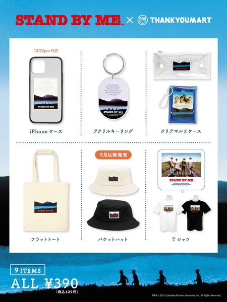 カワイイが集まる店内全品390円のショップ「サンキューマート」を運営するエルソニック株式会社は、"全米1位"を記録した青春ノスタルジー代表作『スタンド・バイ・ミー』とのオリジナルコラボアイテムを8月27日(金)に販売開始いたします。