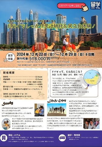 ①LAで英語レッスン&クリスマス体験7日間、②ドバイで英語研修&異文化体験8日間
