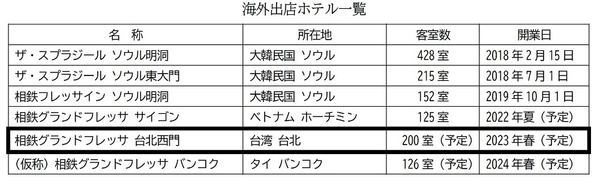 同ホテルは、㈱相鉄ホテル開発が100%出資する台灣相鐵飯店開發有限公司(本社・台北市大同区、董事長・大嶋 茂)が建物を賃借し、内装工事などを実施。相鉄グランドフレッサ(Sotetsu Grand Fresa)ブランドとして、㈱相鉄ホテルマネジメント(本社・横浜市西区、社長・加藤 尊正)が設立する、現地運営法人が運営を受託する予定です。