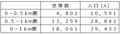 ・店舗から1㎞圏内は、単身世帯が44.1%、2人世帯が24.7%と全体の7割が少人数世帯です。