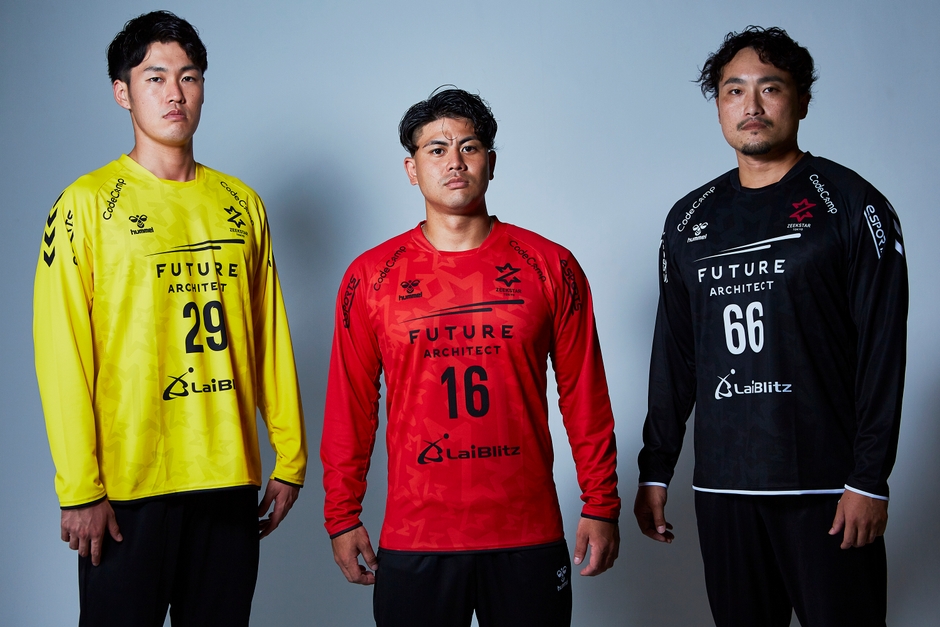 色は選手の精悍さがコートでより際立つよう、鮮やかなジークスターピンクとブラッドオレンジを加え、コートプレーヤー、ゴールキーパーともサードユニフォームまで展開します。
