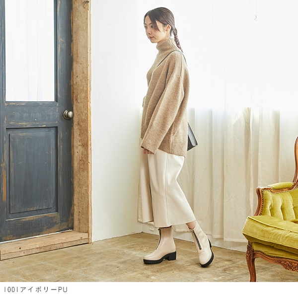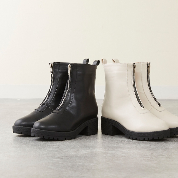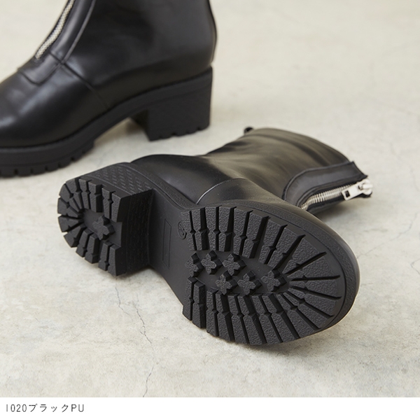 フロントファスナーをあしらってエッジをきかせたフロントファスナーショートブーツ