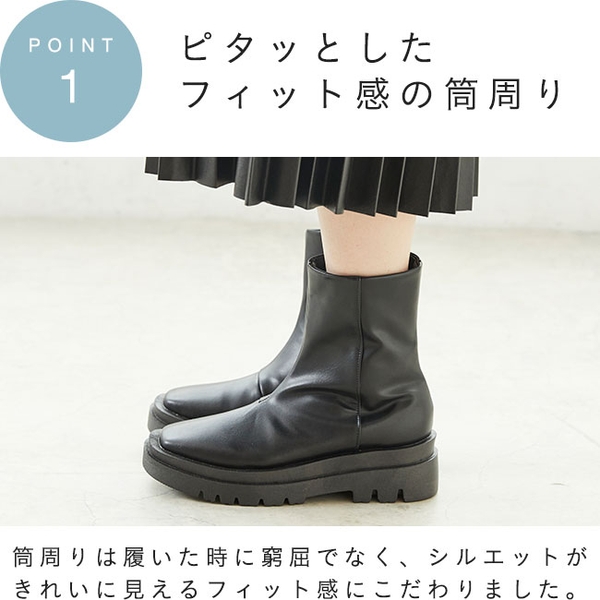 トレンドライクなデザイン!着まわしやすいスクエアトゥ厚底ソールショートブーツ
