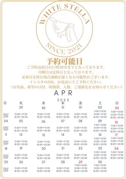 また、アフタヌーンティーの好評や、まん延防止の緩和等に伴い、今まで月曜日と木曜日が定休日でしたが木曜日も通常営業を再開します!前回よりも予約の枠を多くしていますので是非ご連絡してください!