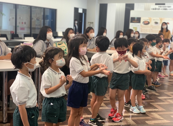 学校の中にある「こども園」のこどもたちの前で披露しました!