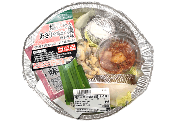 ⑤塩たらとあさりを味わう鍋(キムチ味) 498円(税込537.84円)