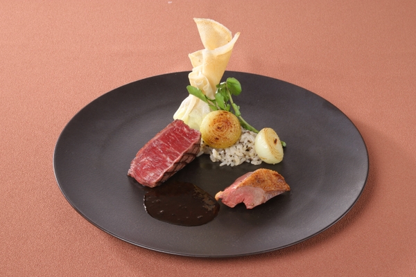 肉料理 いわて短角和牛フィレと和牛サーロインのグリエ トリュフのリゾットと共に
