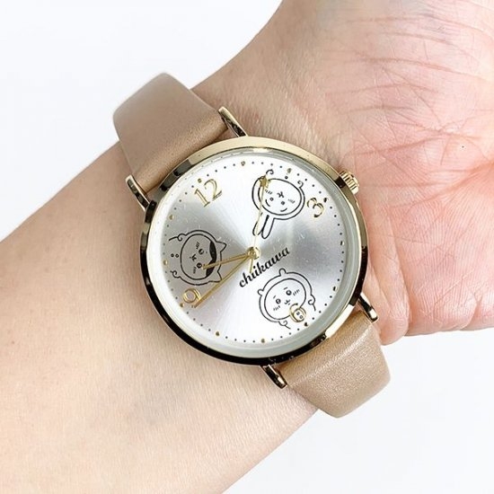 人気上昇中のキャラクター・ちいかわの、腕時計のお知らせです。文字盤にさりげなくデザインされたちいかわが、超キュート。ベルトのカラーはシックなあいまいカラーで、トレンドも抑えています。可愛いのに高級感もあって、ギフトにも推せるアイテムです。