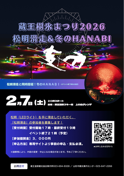 蔵王樹氷まつり2026「松明滑走&冬のHANABI」