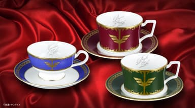 今回は、ジオン・ズム・ダイクンの死後、ザビ家による独裁体制を敷き、初代ジオン公国公王となった「デギン・ソド・ザビ」。ジオン公国軍宇宙攻撃軍中将であり、勇猛果敢で男気ある武人として慕われた「ドズル・ザビ」。そして、ザビ家の長女でありジオン公国軍突撃機動軍少将として、政治的手腕を発揮した策略家「キシリア・ザビ」それぞれが愛用したティーカップをイメージしました。