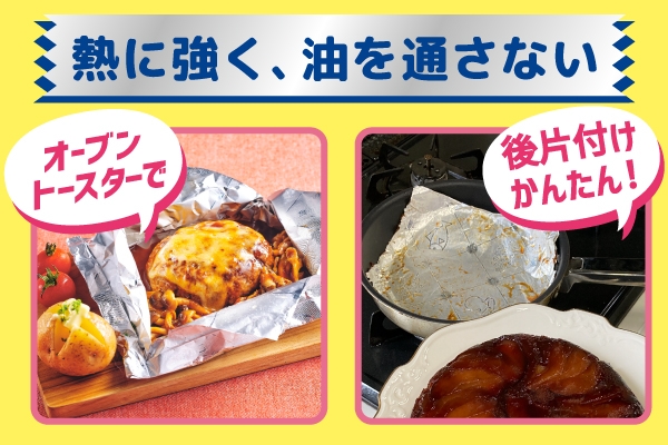 油や汁を通さないため、調理後はホイルを捨てるだけで後片付け簡単!