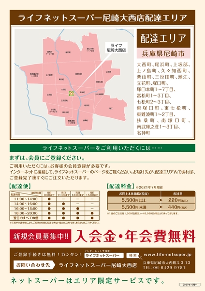 ご注文いただいた商品を店舗からご自宅へお届け「ライフネットスーパー尼崎大西店」サービス開始 【お客様のニーズにお応えし尼崎市内の配達エリアを拡大】