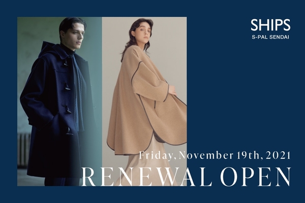 株式会社シップス(所在: 東京都中央区銀座 代表取締役社長: 三浦義哲)は、シップス仙台店を新名称:SHIPS エスパル仙台店(宮城県仙台市青葉区中央 1-1-1 エスパル仙台Ⅱ 2階) とし、11月19日(木)にリニューアルオープンさせる事を発表します。