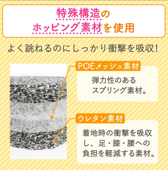 中央層には、弾力性のあるスプリング素材を採用し、エクササイズに必要な反発力を実現しています。