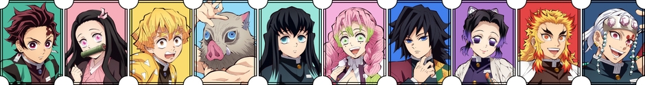 (竈門炭治郎・竈門禰󠄀豆子・我妻善逸・嘴平伊之助・冨岡義勇・時透無一郎・煉獄杏寿郎・胡蝶しのぶ・甘露寺蜜璃・宇髄天元)