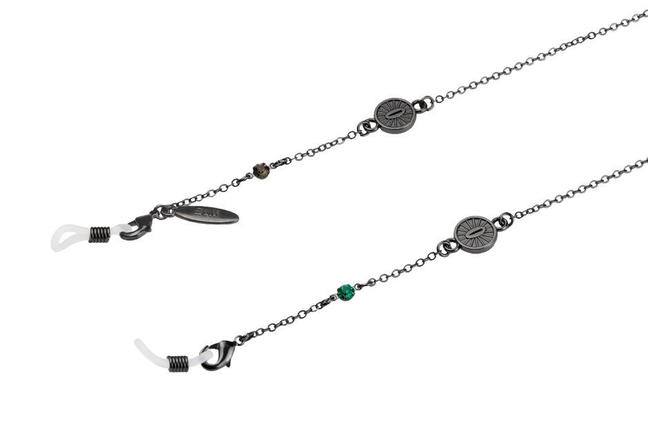 メガネにもマスクにも使える便利なコード。炭治郎・禰󠄀豆子・善逸・伊之助に6名の柱を加えた、全10名のキャラクターの刀の鍔(つば)などをデザインに落とし込みました。