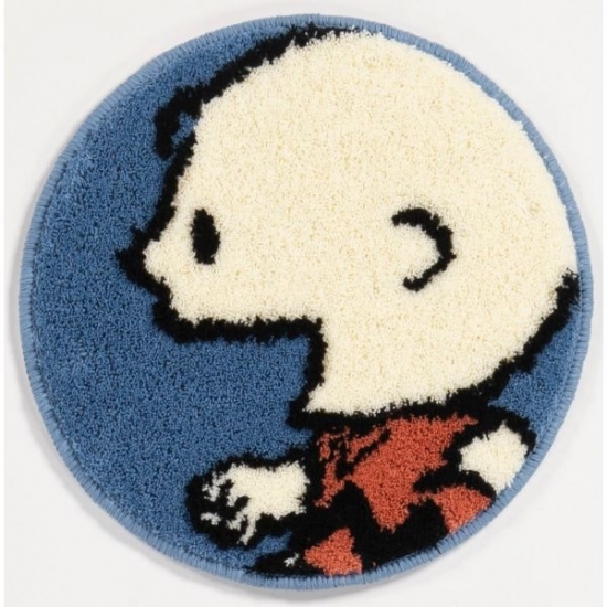アクセントマットということで小さめ直径38センチ。ソファの上や椅子の上にも置ける大きさですね。見上げるスヌーピーと、楽しそうなチャーリーブラウン。今のスヌーピーのファンなのですが、こうしてみるとレトロデザインもかわいいですね。アメリカン雑貨の趣があります。