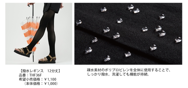 本商品は、軽量性、疎水性に優れたポリプロピレン素材を使用。着用感も軽く、水に濡れてもしっかり撥水し、乾きやすく、快適なはき心地が特徴のレギンスです。さらに夏の強い日差しも気にならないUV対策も付加しました。デイリーに取り入れやすい10分丈と、サンダル着用時に足の甲までカバーできる12分丈をラインアップ。足もとに悩みの多い梅雨の時期や、アウトドアにもおすすめの商品です。