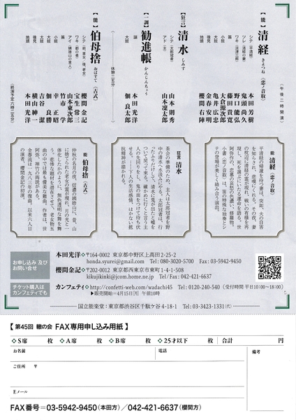 金春憲和、本田光洋、櫻間金記、金春安明、櫻間右陣、本田芳樹、本田布由樹、他