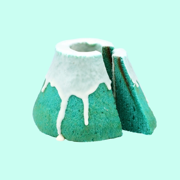 「青い富士山バウムクーヘン」は、3D技術を用いて富士山のリアルな形を再現。さらに高い技術と厳選された原料を用いてキレイな青色を出し、山肌の色合いを表現しています。富士山にかぶる雪もホワイトチョコレートで演出。リアルな富士山の美しい姿を楽しむことができます。バウムクーヘンとしては極めて珍しいチョコミントの味わいのなかに、隠し味として練り込まれた白桃果汁がほんのりと香る、山梨にピッタリのスイーツです。