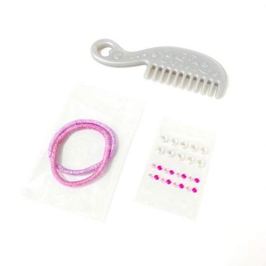 中にはエルサのヘアメイクをするための、ブラシやヘアゴムなどが同梱されています。
