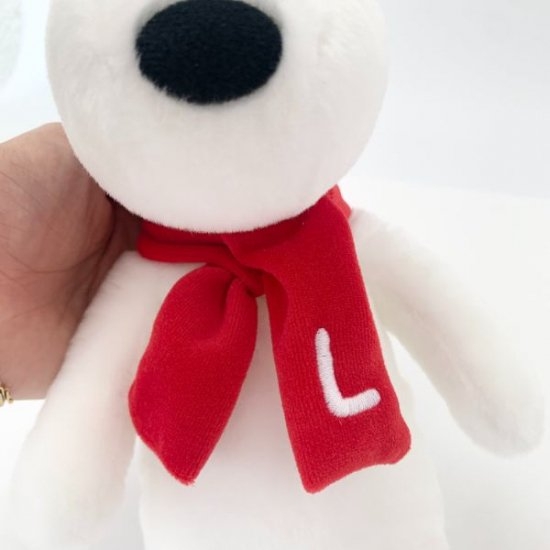 白い身体に映える赤いマフラーもリサのチャームポイントですね♪イニシャルのLがマフラーに刺繍されています。