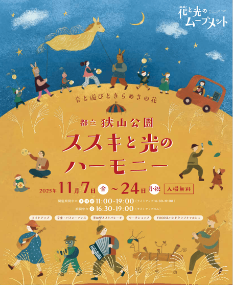 <2025年11月7日(金)~11月24日(月・祝)開催>【狭山公園】「花と光のムーブメント ~⾳と遊びときらめきの花 ススキと光のハーモニー~」