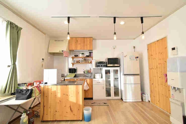 また、LDKに備えづけられているLEDダウンライトが、思っていた以上に明るく、キッチン側にあるダウンライト2基+キッチンにあるLED蛍光灯だけで十分。