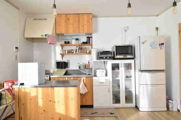 オーナーさんの説明では、こちらのキッチンは以前使用していたものをリメイクしたとのことですが、身長が大きめの男性の場合、このキッチンの高さでは「少し料理がしにくいのかな?」と思いましたが…