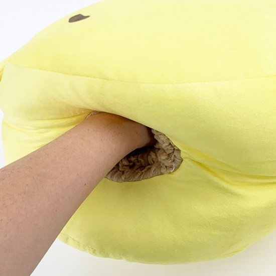 手をズボッと中に入れればボアがあったかい。ぬくぬくあったまれるクッションなんです♪