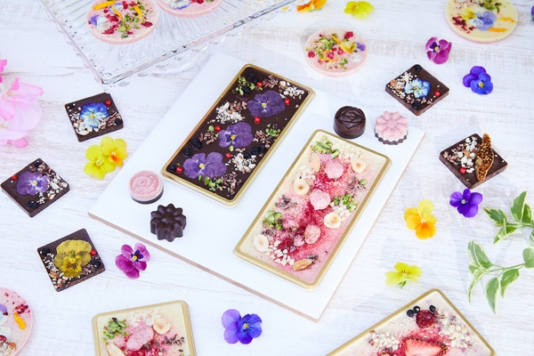 期間中は、花をテーマにしたマルシェを開催します。花のエチケットがあしらわれたワインやエディブルフラワーを使ったスイーツなどが購入できるマルシェです。ワインは、ピーマン通りのキッチンカーで山梨県、長野県のワイン10種類を販売。例えば、爽やかな甘みと酸味があり、チャーミングな味わいのロゼワイン「ローズ・ロゼ」(奥野田ワイナリー/山梨県甲州市)のエチケットには、バラの絵が描かれています。他にも、エディブルフラワーをあしらった優しい甘味が特徴のチョコレートなどもあり、見た目も楽しいマルシェを満喫できます。