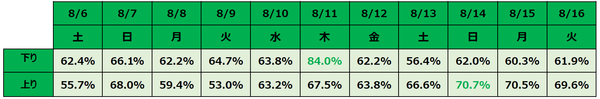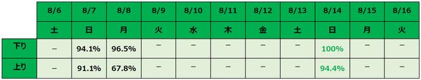 ※下り・上りそれぞれ、一番高い利用率を緑で表記しております。
