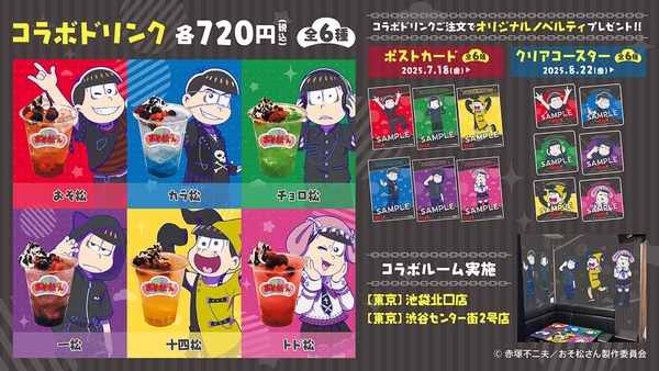 対象店舗にて、『おそ松さん』・コラボドリンク全6種を販売いたします。