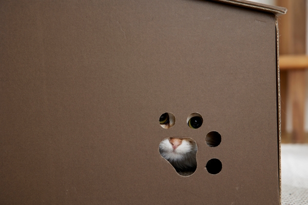 猫は狩りをしていた祖先の名残から本能的に身を隠せて安心できるような閉塞的な空間が好きです。そこで猫が安心できる空間を提供したいと考え、隠れ家に最適な商品「究極の猫の隠れ家」を企画。