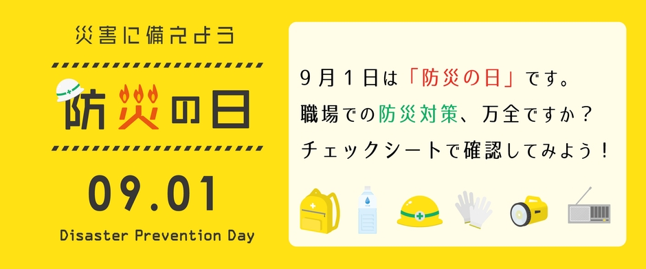 防災の日をきっかけに、みなさんもぜひ職場でのチェックや話し合いをしてみてはいかがでしょうか?