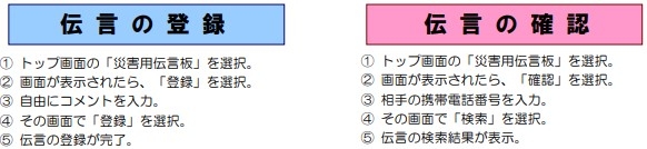 ※災害伝言ダイヤルは、毎月1日、15日等に体験利用することが出来ます。
