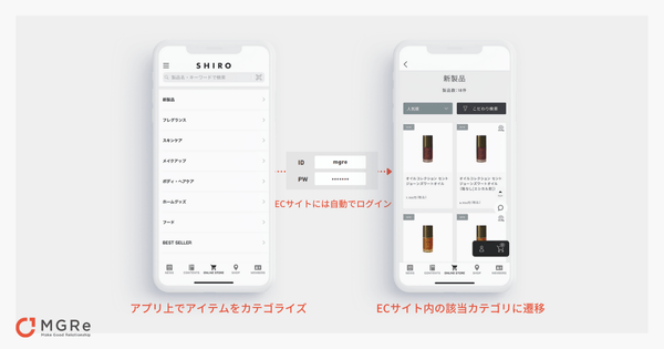 アプリの特徴2. 自動ログイン×アイテムカテゴリでEC送客をスムーズに