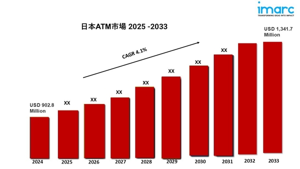 日本のATM市場規模は2024年に9億280万米ドルに達しました。今後、IMARCグループは、2025年から2033年の間に4.1%の成長率(CAGR)を示し、2033年までに市場が13億4,170万米ドルに達すると予想しています。