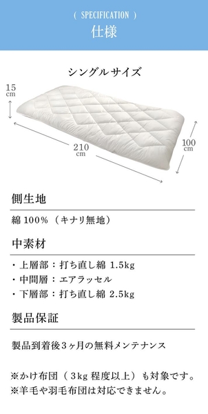 また、今回は新綿を使ったマットレスもご用意しています。