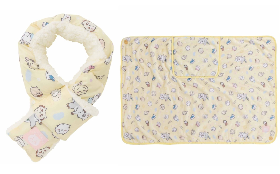 右)あったか収納ポケット付き3WAYブランケット(パステルイエロー) 2,640円(税込)
