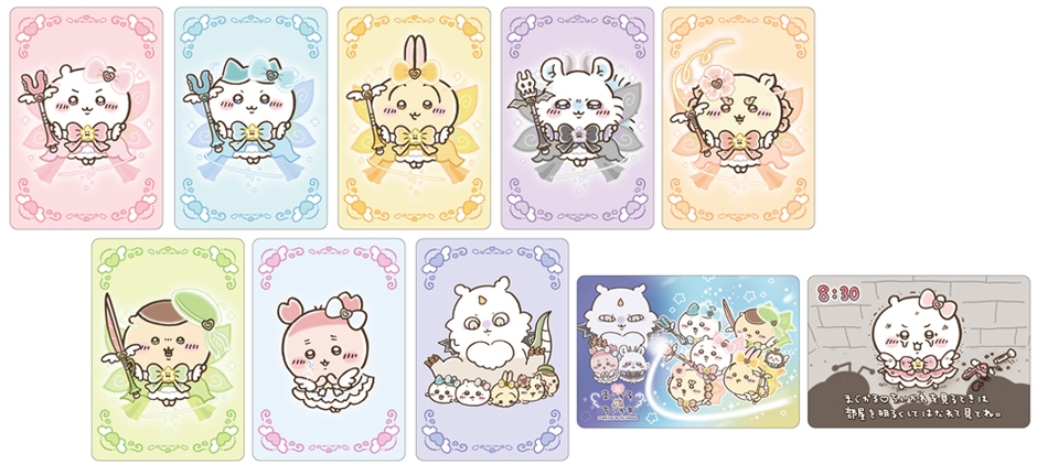 ①『超まじかるちいかわ』商品を1点以上含む、『ちいかわ』商品ご購入のお客様には、「トレーディングホログラムカード(全10種)(非売品)」を税込2,200円お買い上げ毎にランダムで1枚プレゼント!!