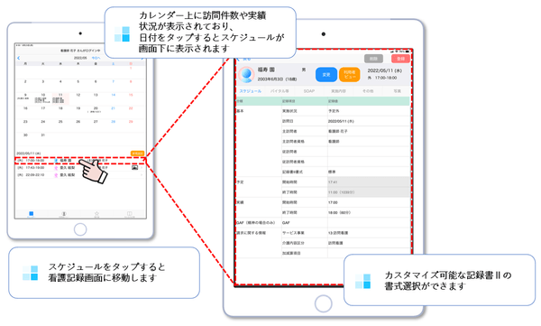 本アプリでは、日々の記録業務をiPadやiPhoneなどのモバイル端末より入力できます。