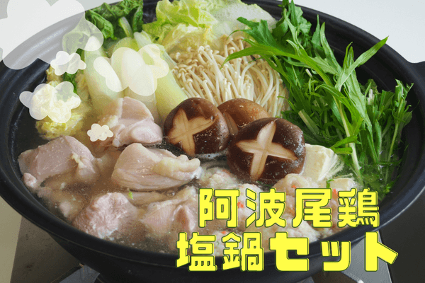 阿波尾鶏もも切り身、阿波尾鶏つみれ、阿波尾鶏のガラからとった塩鍋スープをセットにした贅沢な阿波尾鶏づくしの鍋セットです。シンプルですが飽きの来ない塩ベースのスープは、阿波尾鶏の旨味を引き立てます。