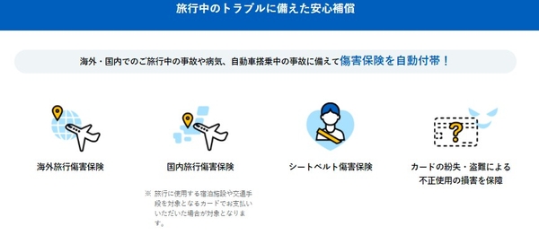 その他にも、海外でのカードショッピング利用のキャッシュバックや、年会費無料カードでは付帯されないことが多い海外旅行傷害付帯保険など、嬉しいサービスが充実しています。