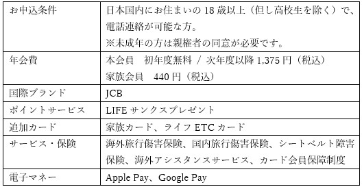 ◆ライフカードstella(ステラ)の付帯サービス